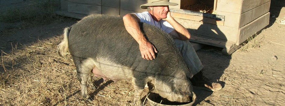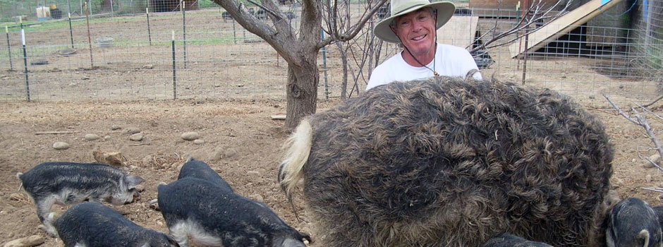 Winfield Farm operates entirely on SOLAR ENERGY & HUMAN POWER— Bruce raises our Manga herd single-handed. He has a personal relationship with every pig. Winfield Mangas are treated with utmost respect and care — birth to harvest. NO ANTIBIOTICS Winfield Manga diet consists of pasture plus 100% naturally grown barley, squash, acorns, walnuts – all except barley hand harvested locally. NO GMO FEEDS (No corn, no soybeans)