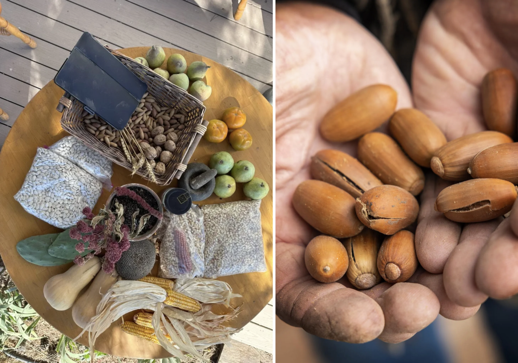 Left: A bounty of subsistence crops. Right: Acorns are on the menu. | Credit: Matt Kettmann; Macduff Everton