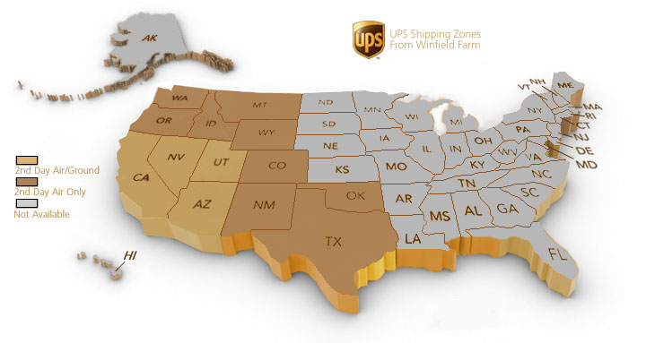 Where We Ship — We ship to CA, NV, UT, AZ, OR, WA, ID, CO, NM, MT, WY, TX, OK via UPS Ground and Air. Local deliveries in the Buellton – Santa Barbara area by special arrangement. Local customers also can pick up their orders at Winfield Farm at a mutually agreed, prearranged time.